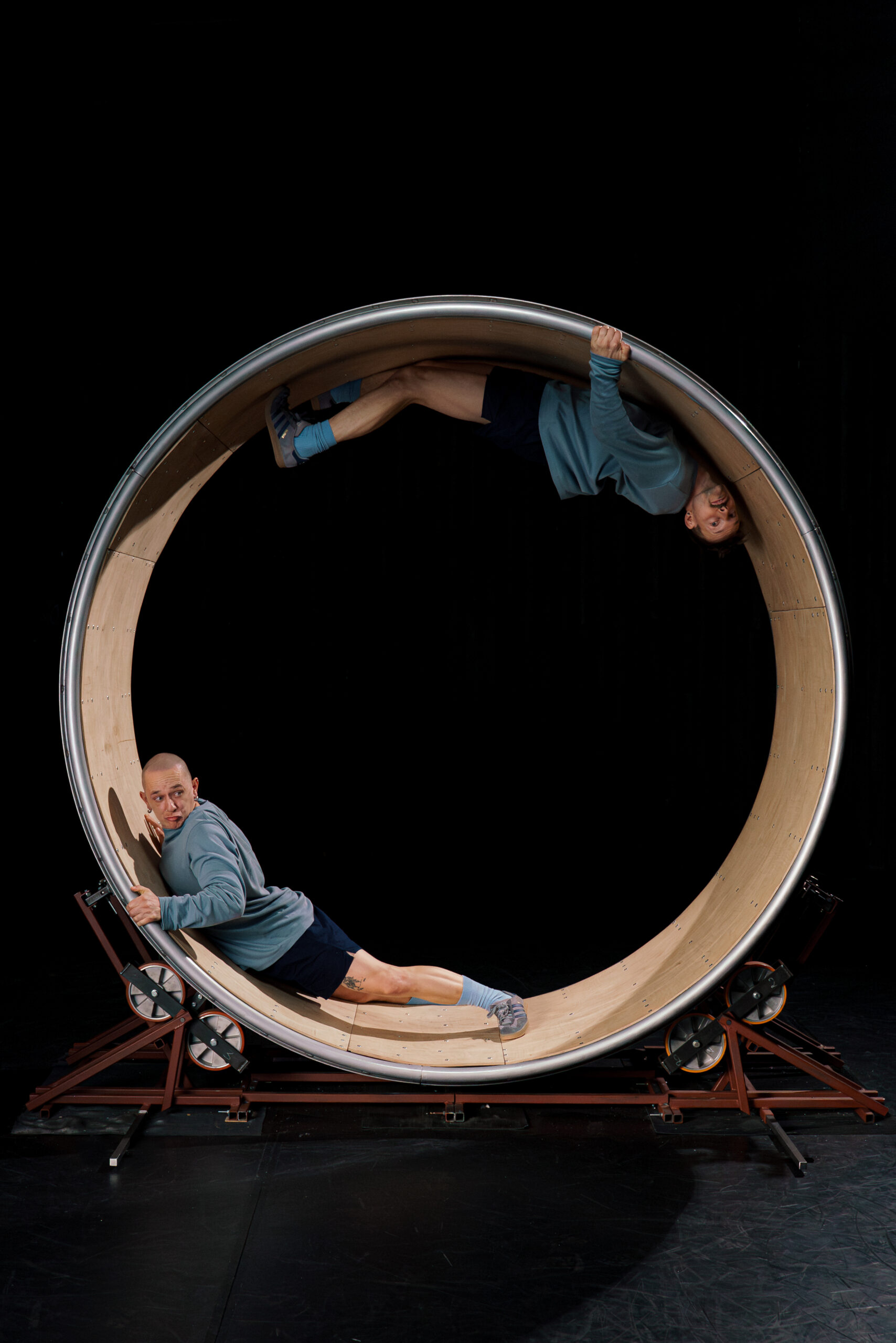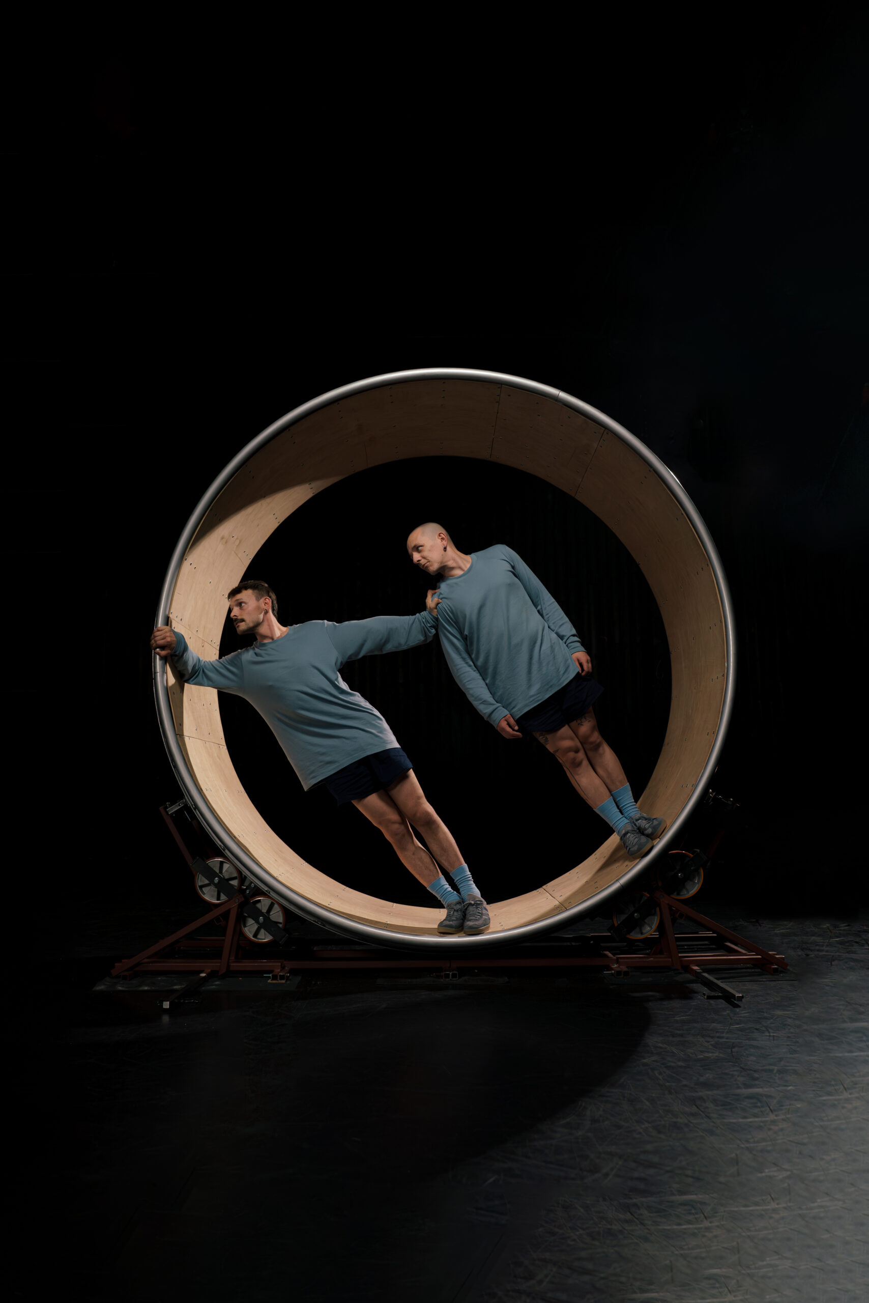 De stuwende soundtrack en het niet aflatende ritme stellen het uithoudingsvermogen van de twee artiesten danig op de proef. Het rad wordt zowel symbool als instrument van hun existentiële strijd: een metafoor voor de eindeloze race naar een ongrijpbaar geluk.